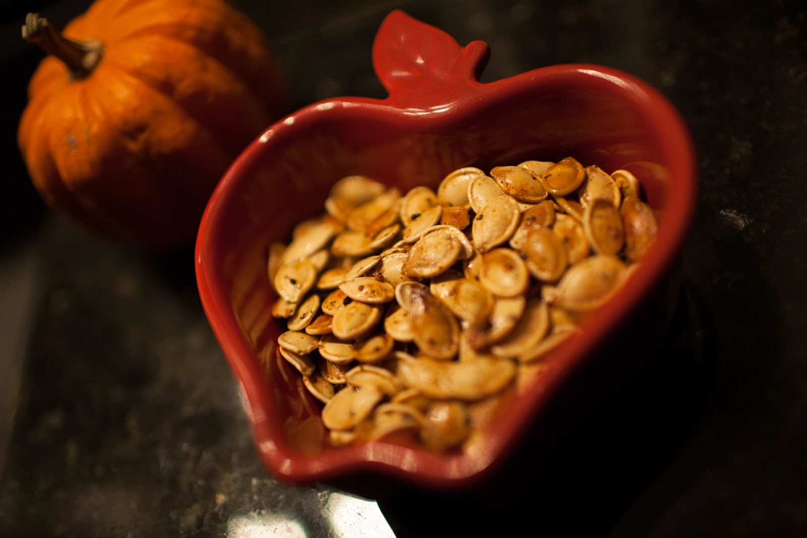 Lastly, I saved some of the pumpkin seeds and roasted them. Nick and his brother Matt really enjoy them so I figured it would be a good snack for us to enjoy while we are passing candy out to the kiddies. The recipe for the pumpkin seeds is below.