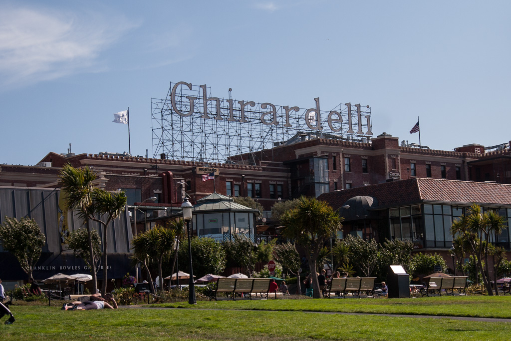 We spent some time over by the bridge and then made our way back towards Ghirardelli Square and Fisherman’s Wharf. There was lots to see and do in this area of town. After dipping a toe into the freezing bay waters, we made our way through the main street. The Winery tasting room was along our route, so naturally we stopped in for a tasting. All of the wine was delicious and crisp. We ended our first day in San Francisco with a delicious bayside meal and hot fudge sundaes at the Ghirardelli Ice Cream Shoppe.