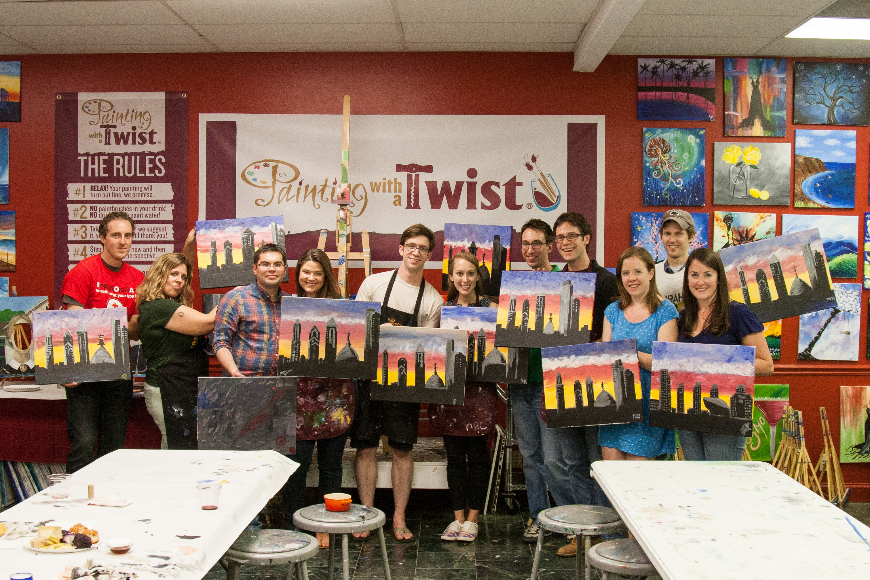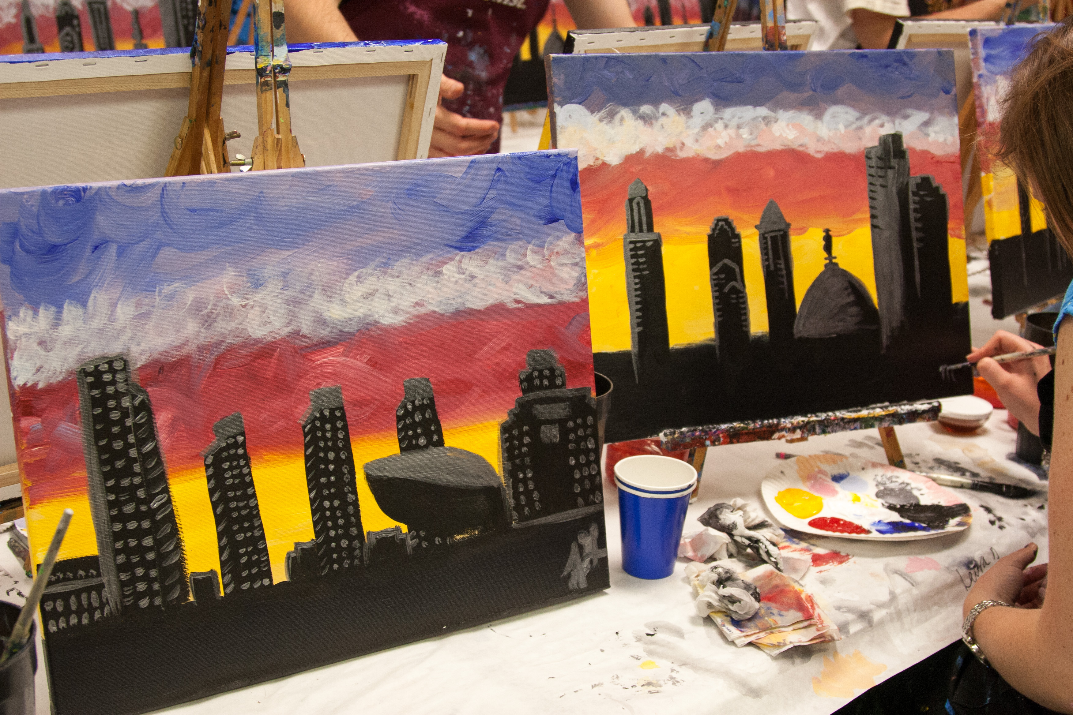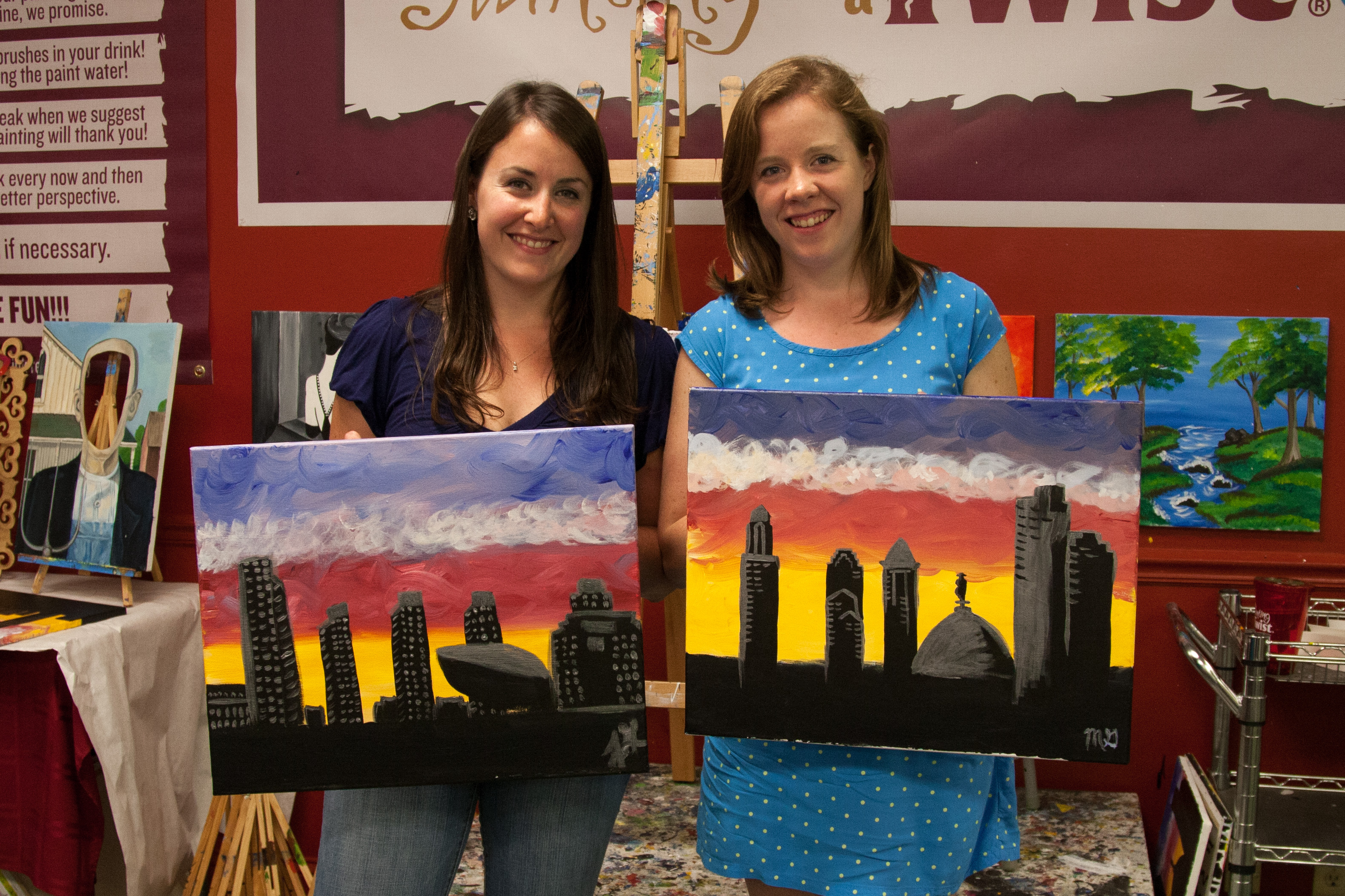 Saturday evening we were off to the suburbs to meet Melissa’s friends. They had pre planned a night of painting and wine, so of course I was in. It was a lot of fun. My first “Paint and Sip” type outing. The instructor was very funny and helpful. We all had a great time trying to paint and enjoying some good wine.