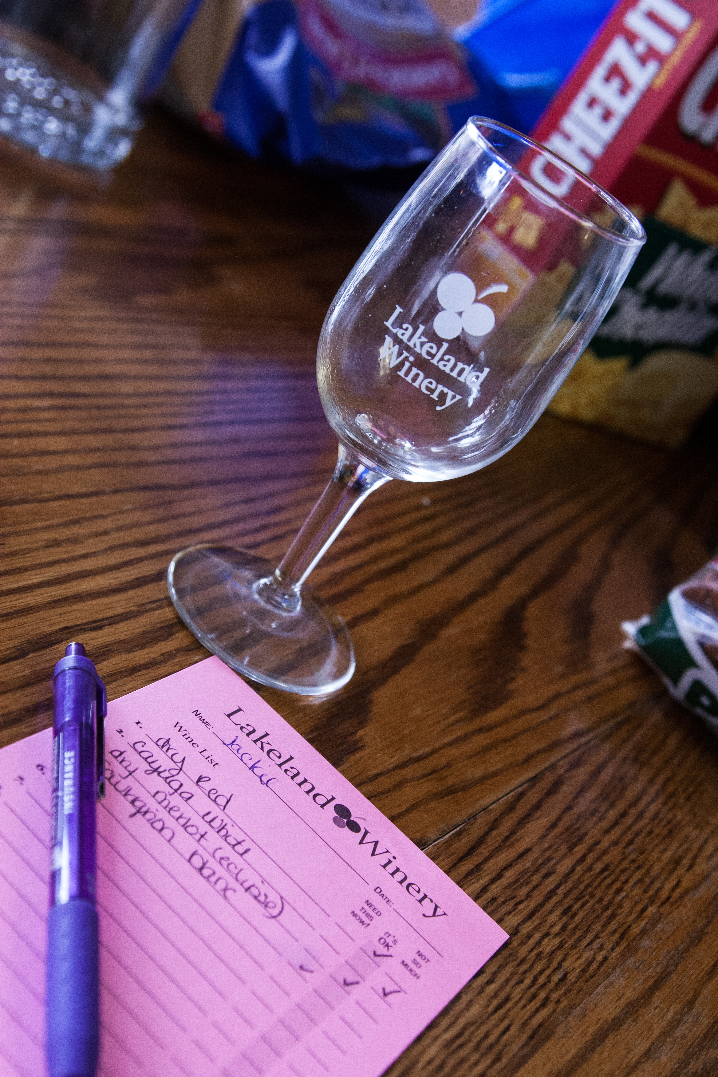 Once we were all settled in and the snacks dispersed throughout the tasting room, the ladies at Lakeland Winery starting pouring. We had over 25 tastings to get through. The wines varied between whites and red, sweet and dry, and a few other characteristics. During the tasting, the ladies would inform us which of the wines we were currently tasting were in the running for the wine to be made so that we could cast a vote.