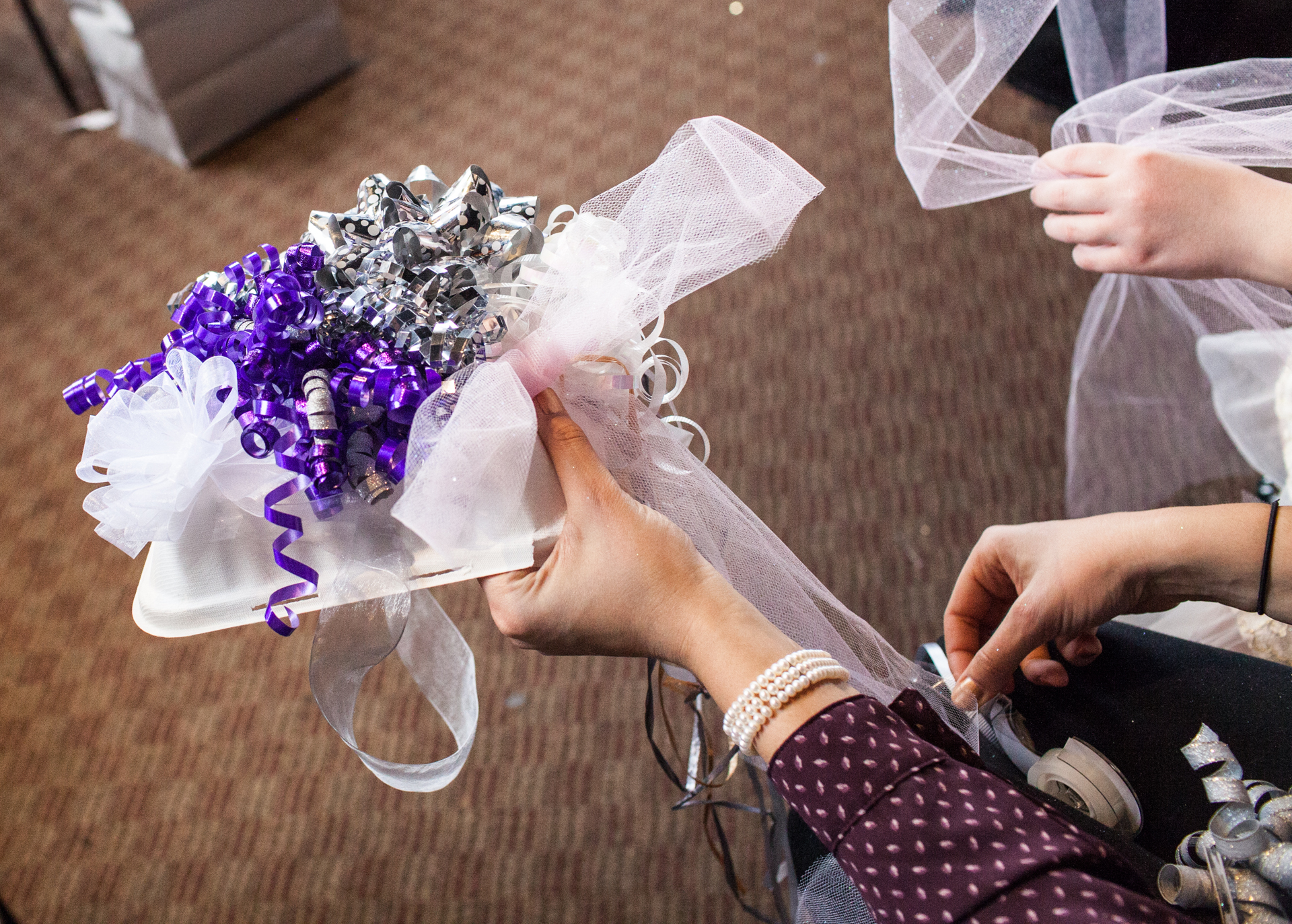 We played a few games will Dianna opened her gifts; Bridal Bingo and How Well Do You Know The Bride. She received a lot of beautiful and useful items for her and Keith to enjoy. While she was opening, Tara and Jenna were placed on “Bow Hat” duty. I must say, they did a fabulous job.
