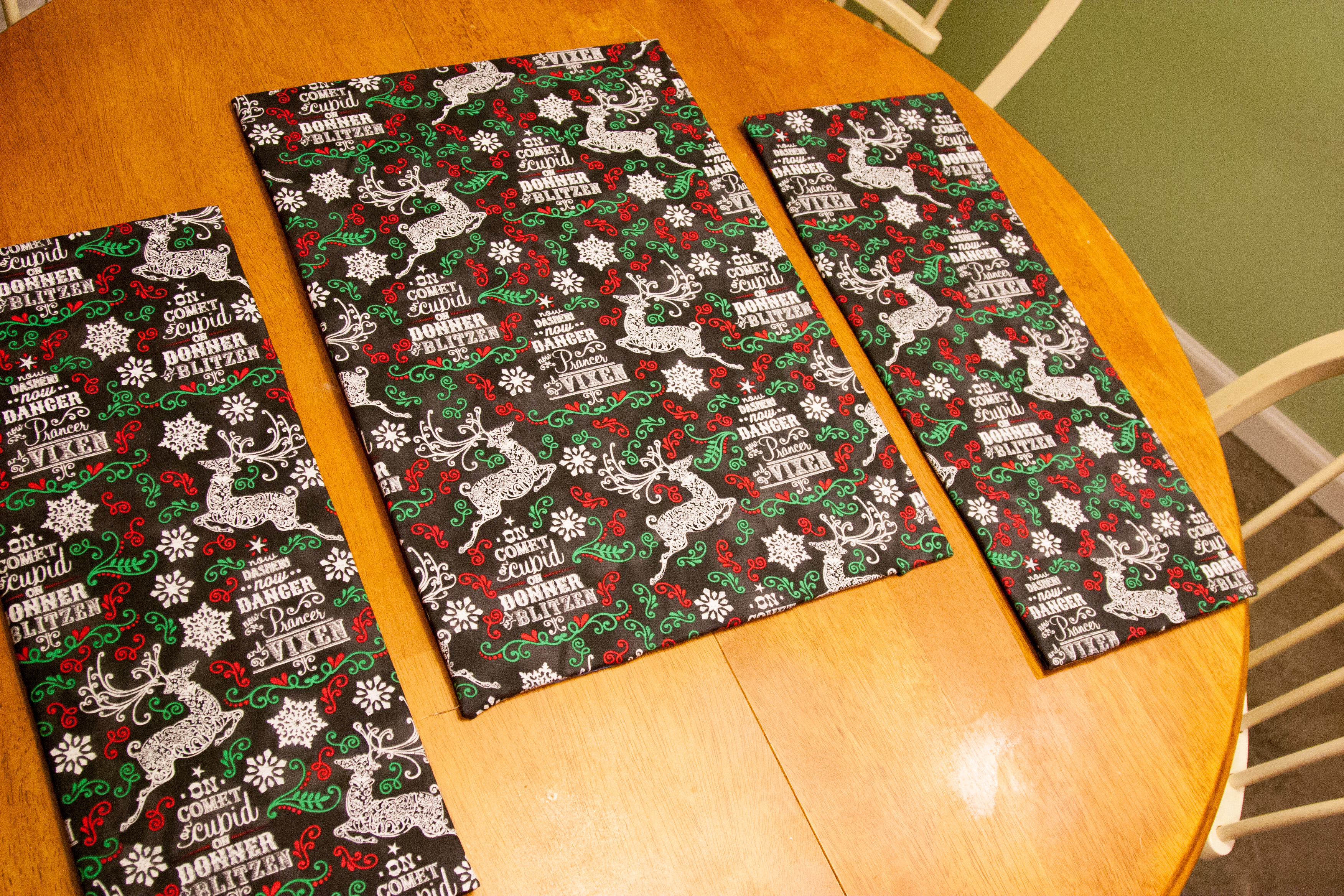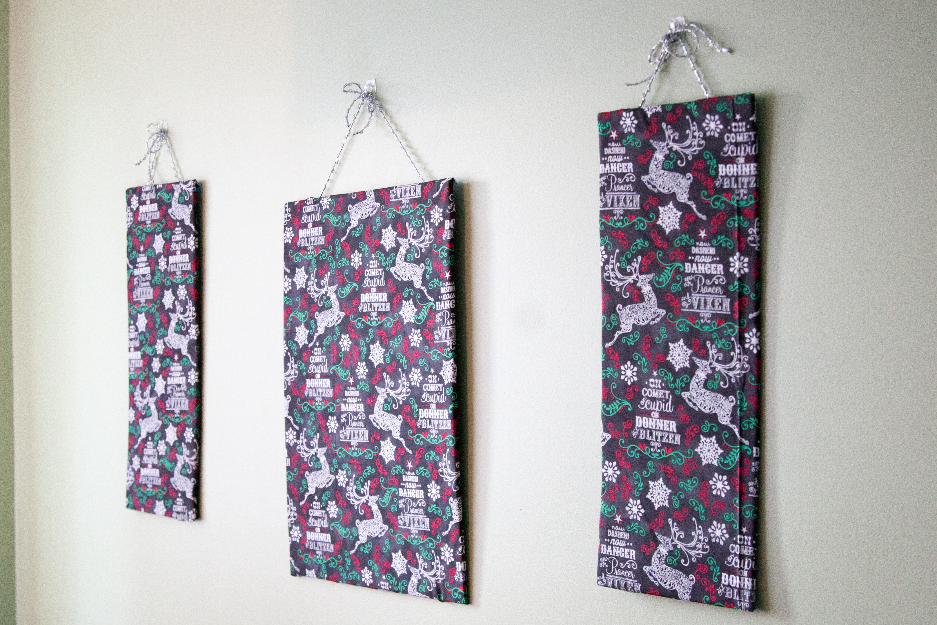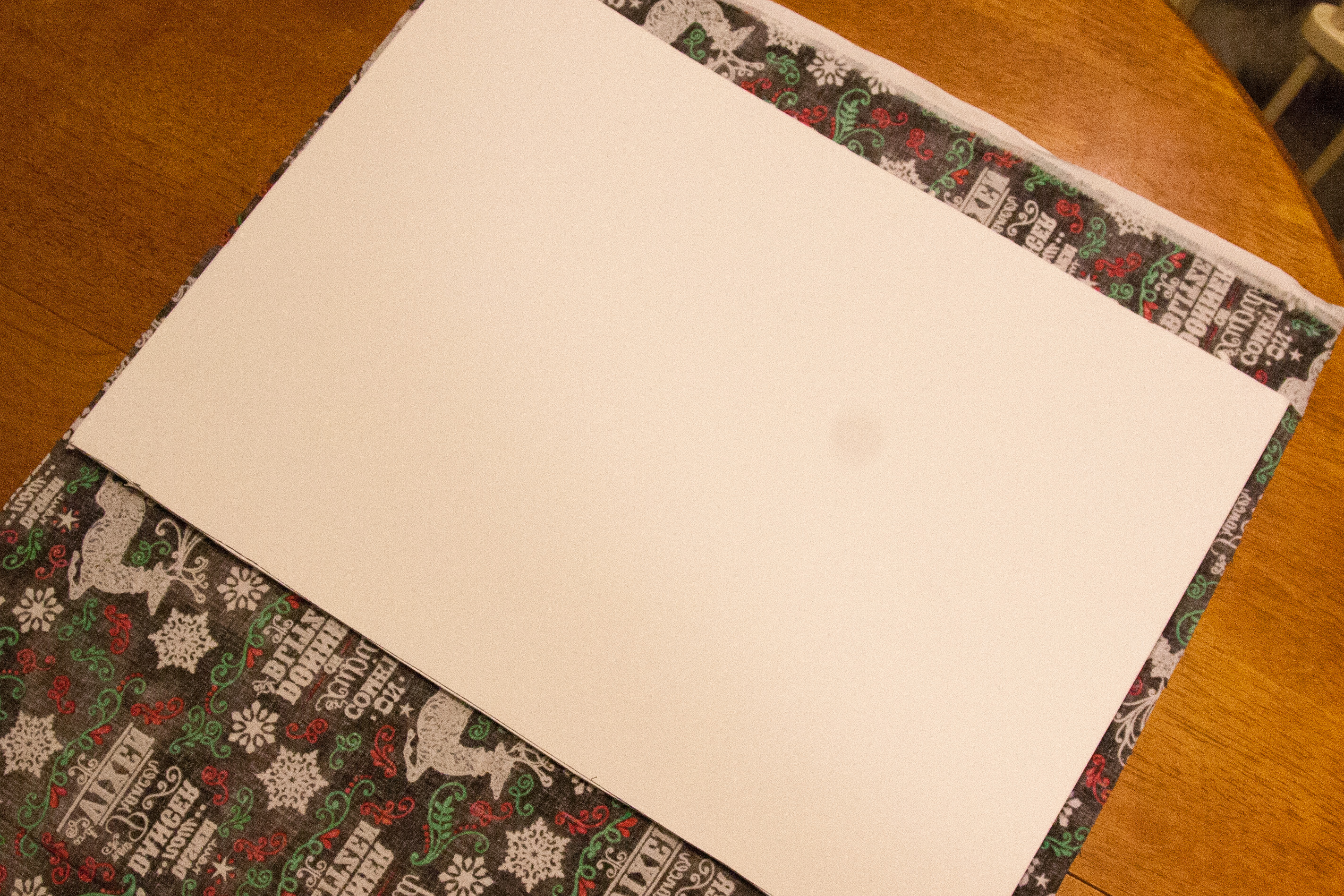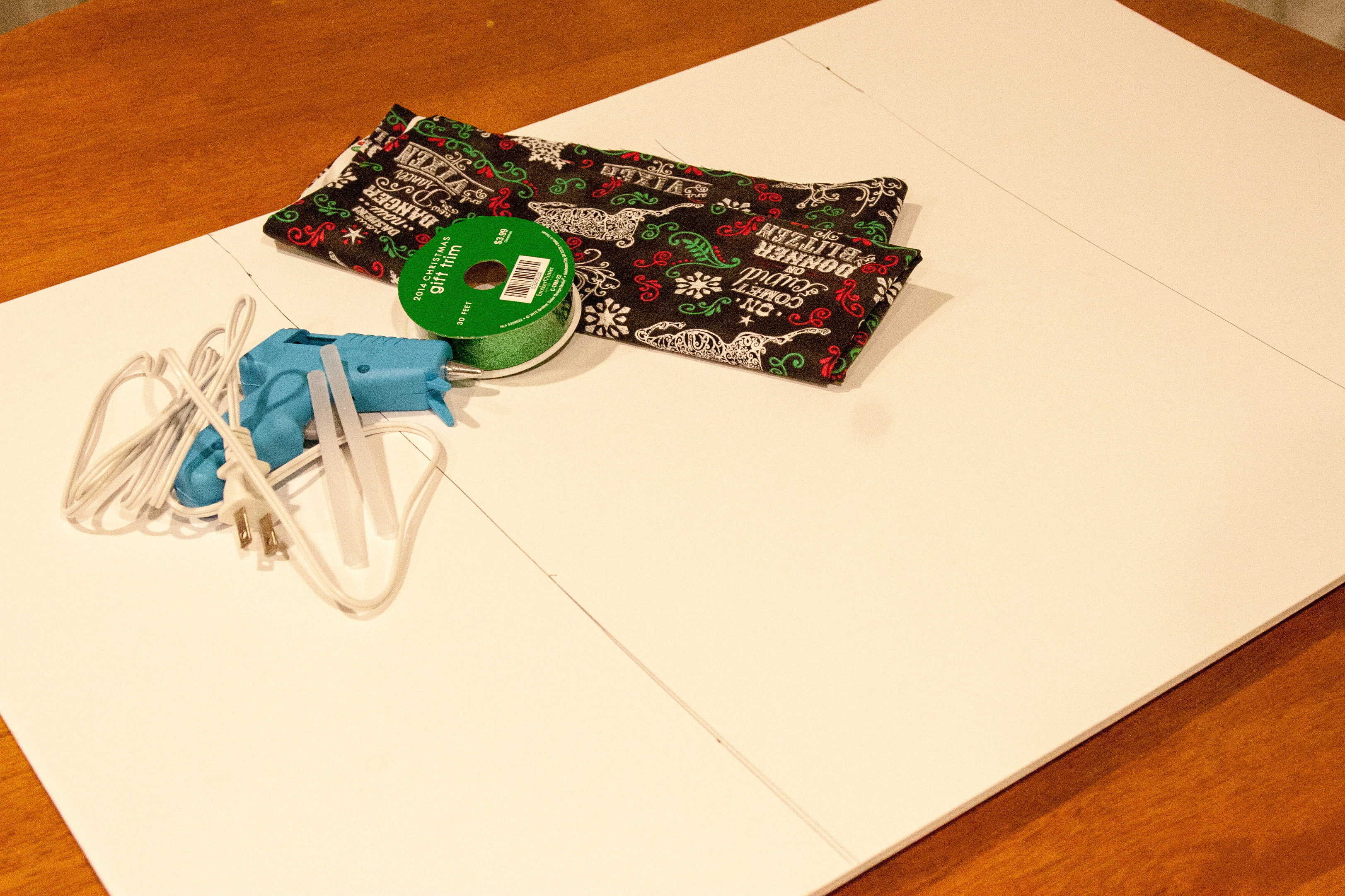 Materials 1/2 yard of cherry holiday fabric 1 large piece of foam board Ribbon or string Glue gun and glue sticks