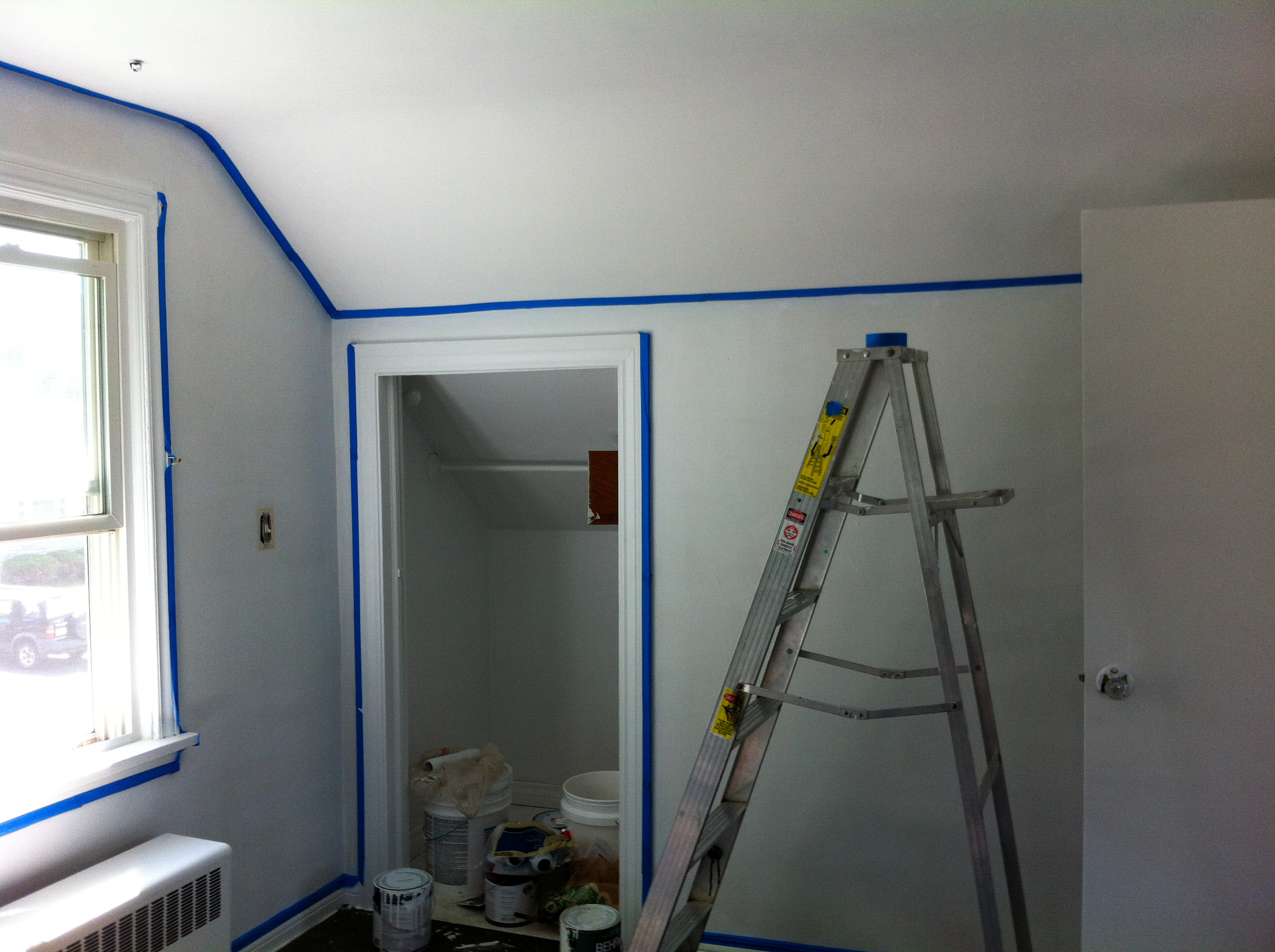 The next step was to scrub the walls. I’ve mentioned before that the previous owner was a heavy, heavy smoker. The entire house was coated in nicotine, essentially why so much work had to be done. I found a solution at Home Depot/Lowes that worked wonders. This was probably the most important step. You really need a clean canvas to allow for the paint to adhere to the walls.