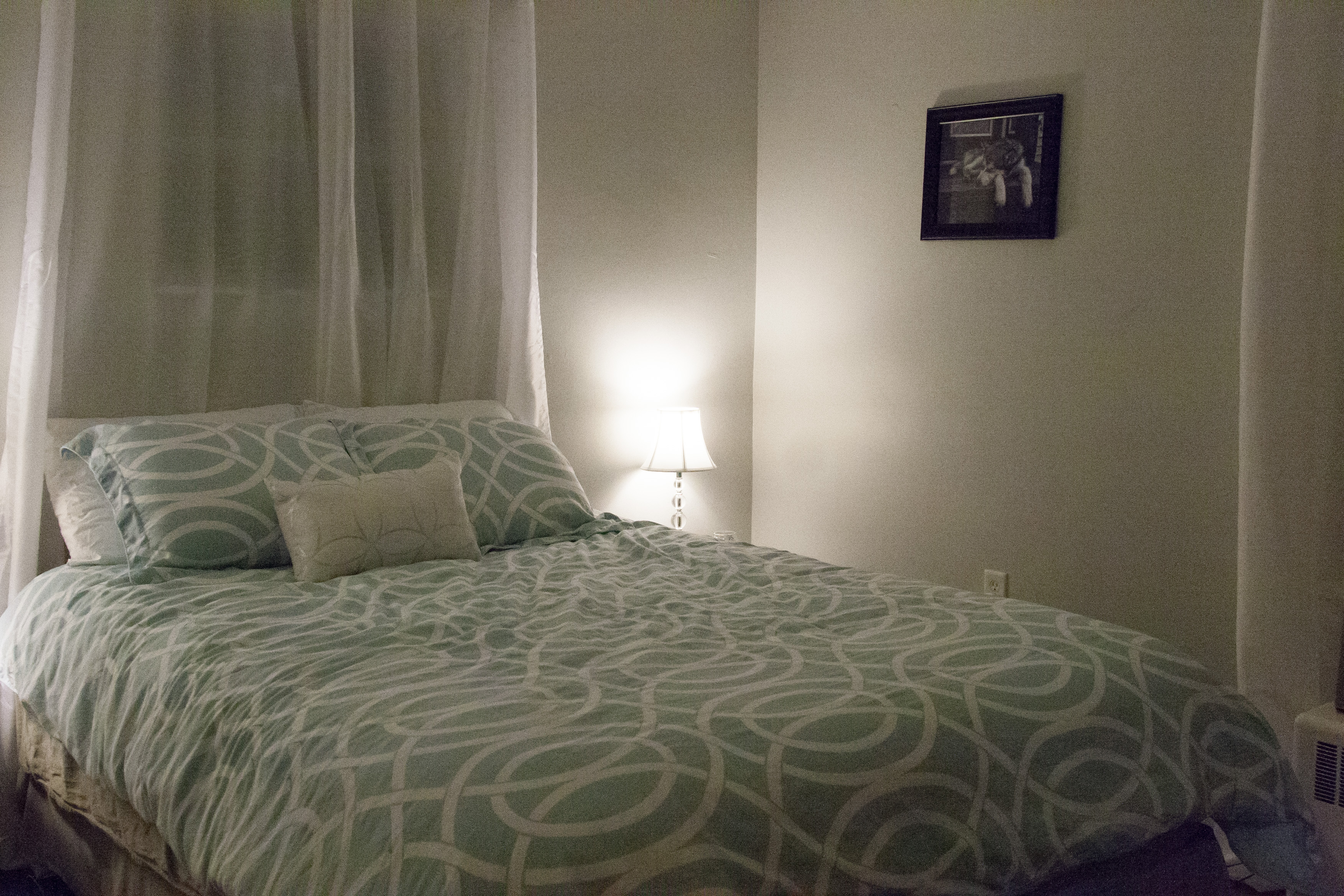 I decided to hold off on a whole new “master” bedroom for a little bit. The decor and bedding I had from my apartment bedroom were more than adequate for the time being. I wanted to direct the money to more important things. Nevertheless, there were a few things that needed to be completed before we moved in.